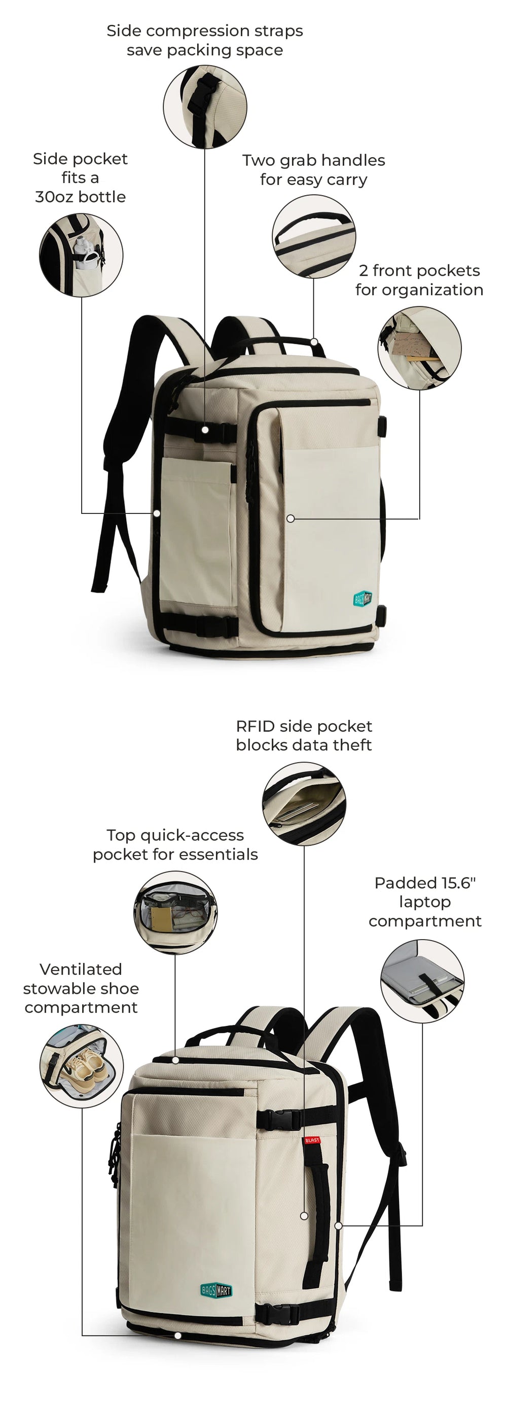 - Carry-on approved, expandable 28¨C38L for 3¨C5 day trips.