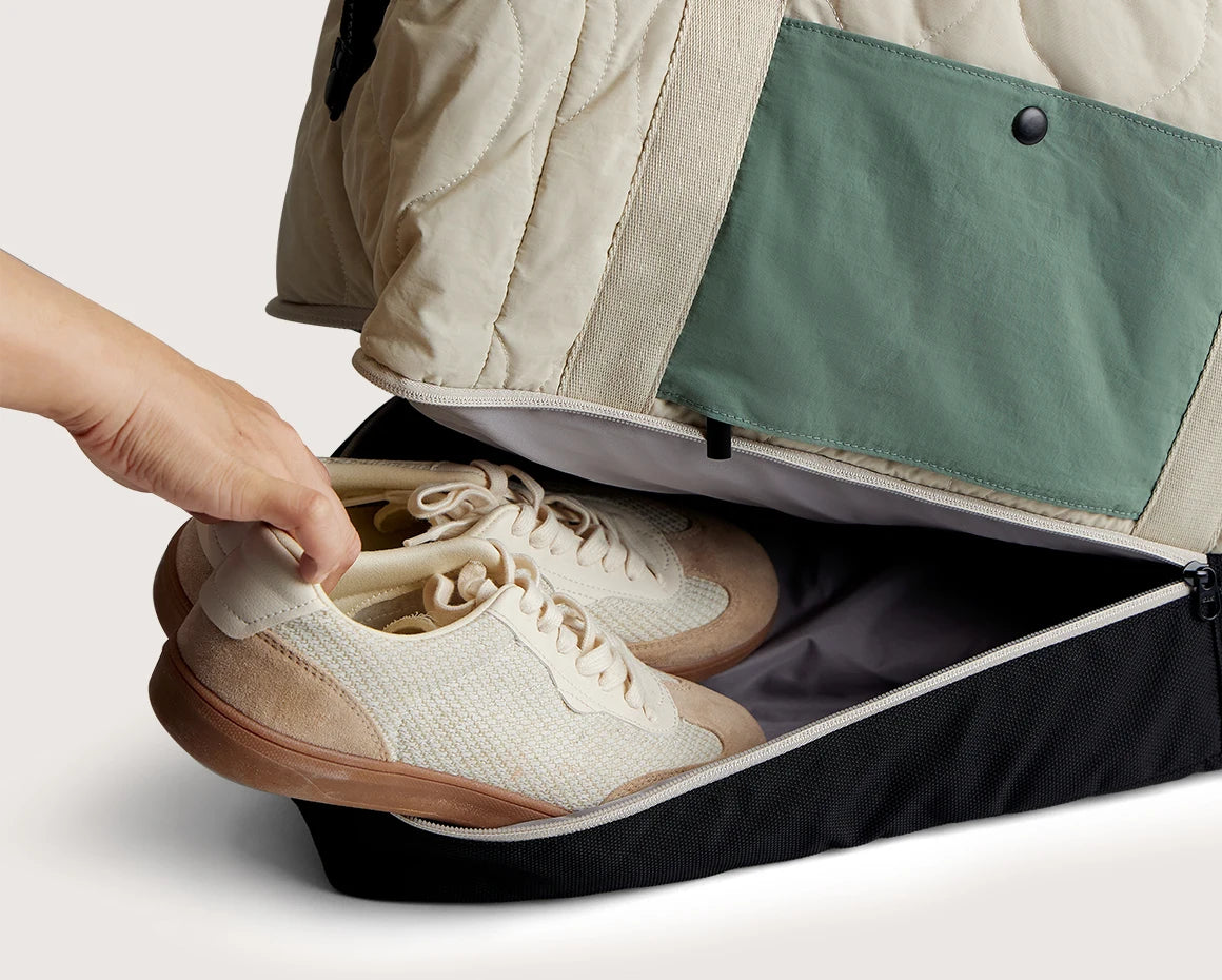 - Paz ( Walker) Reisetasche: Eine geräumige und dennoch kompakte Reisetasche mit speziellem Schuhfach , strapazierfähigem, wasserabweisendem Stoff und mehreren Trageoptionen für den Komfort unterwegs.