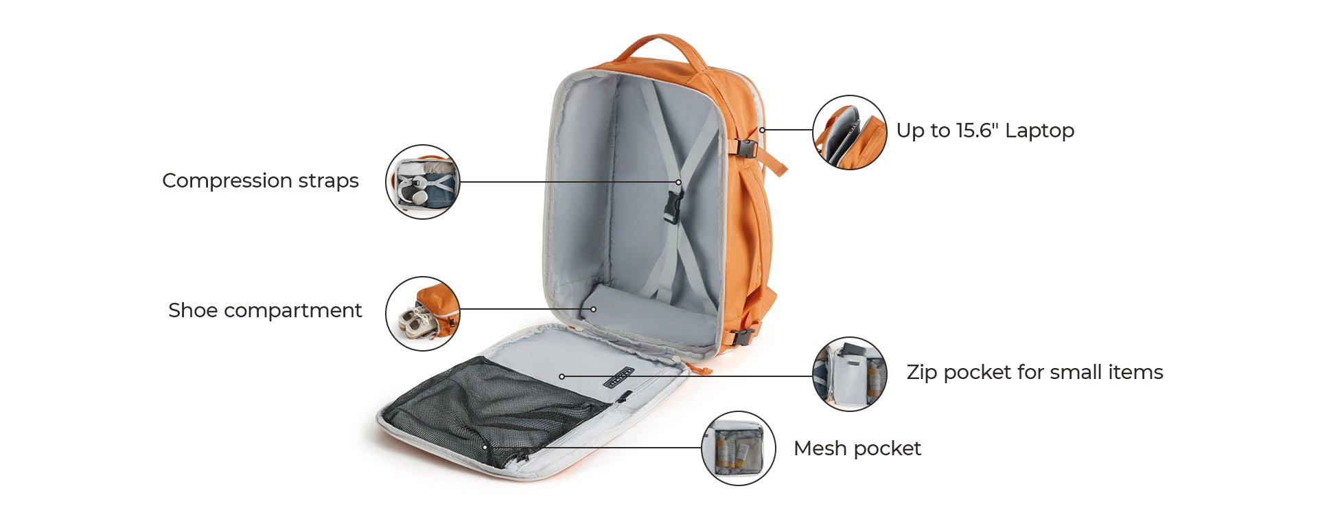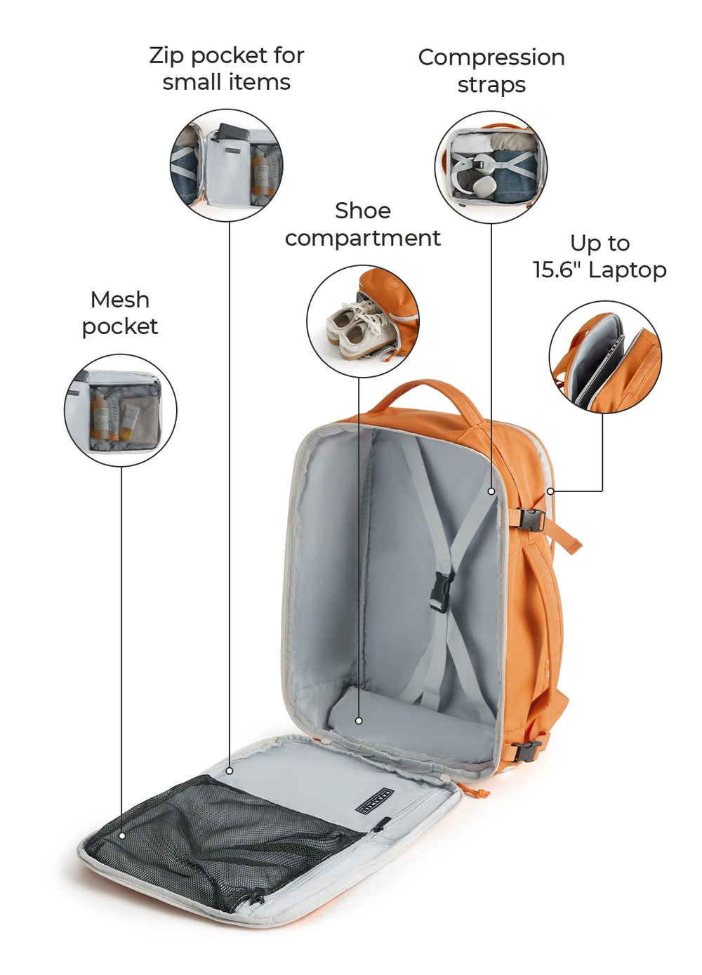 • 180°-Öffnung für kofferartiges Packen mit Kompressionsriemen
