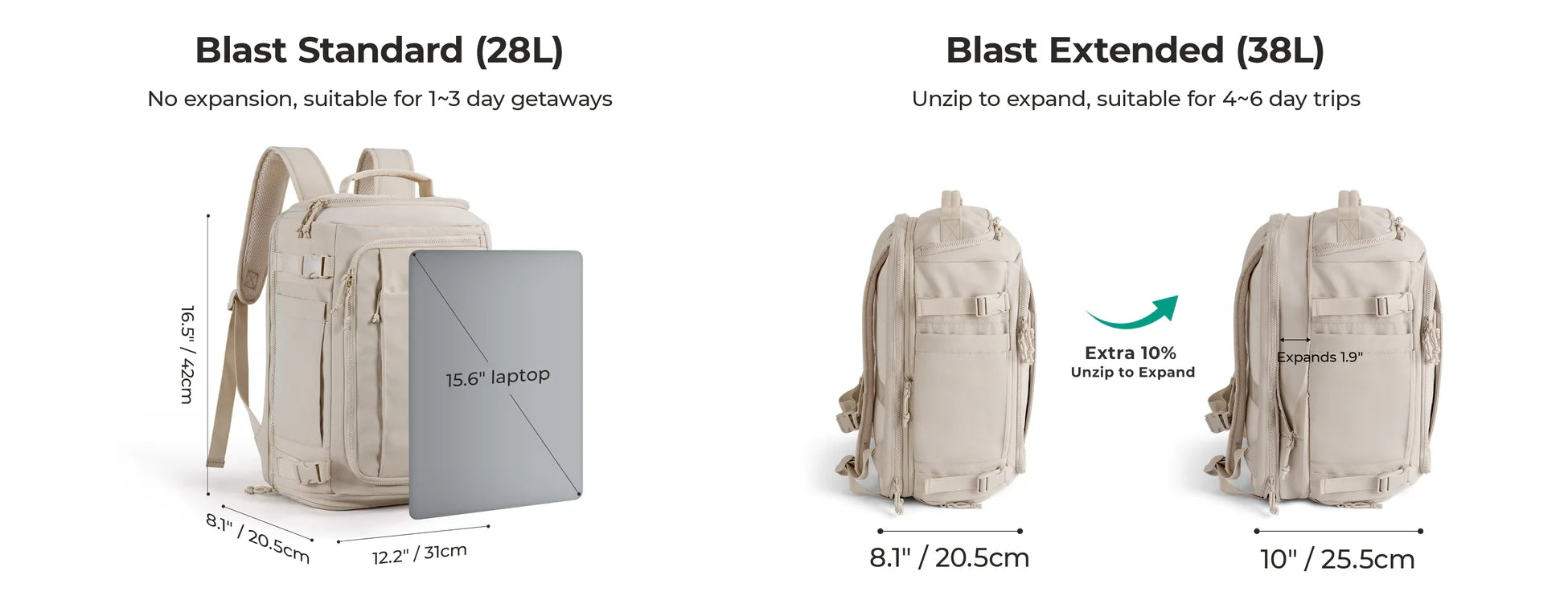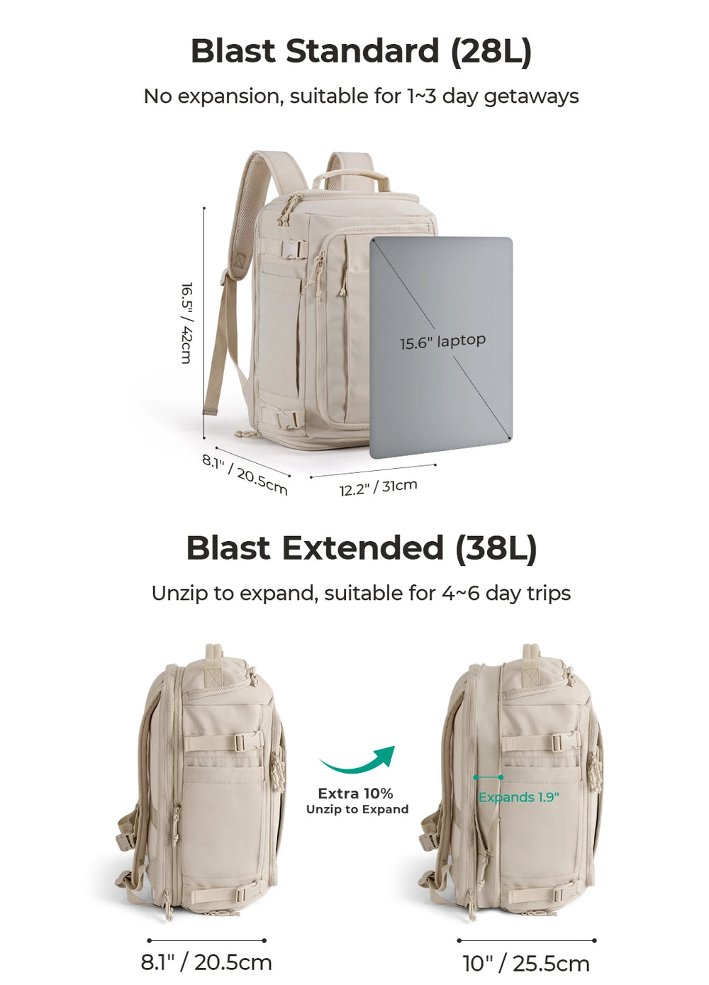 Der Blast Quick Access Carry-On-Reiserucksack und die Soar 6L-Kamera-Umhängetasche sind das perfekte Duo für Reisende und Fotografen, die unterwegs Wert auf Komfort, Organisation und Stil legen.