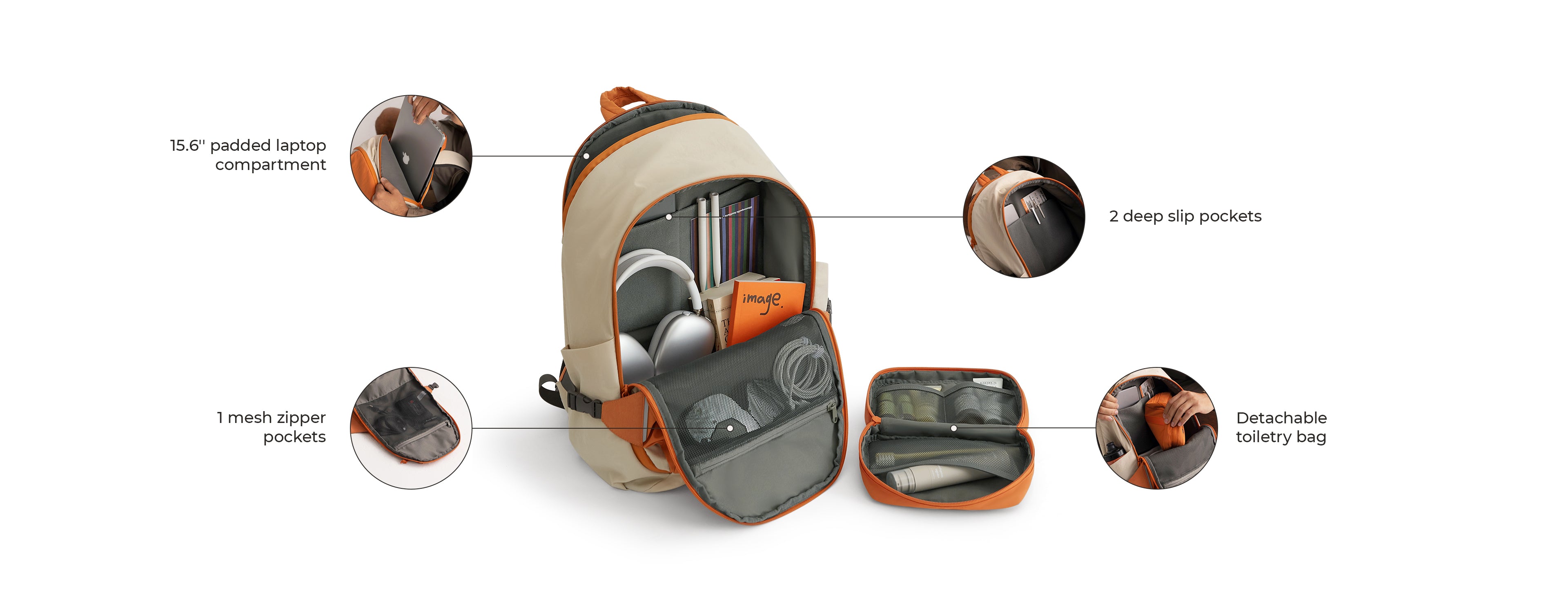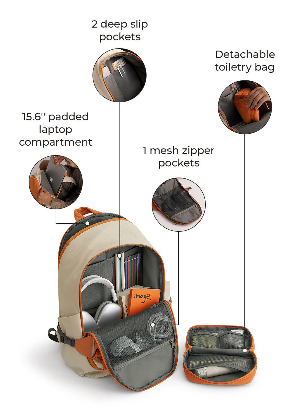 Laptopfach: In das Hauptfach passt ein 15,6-Zoll-Laptop, und in ein kleineres Fach passen Gegenstände wie iPad, Kindle oder Nintendo Switch.