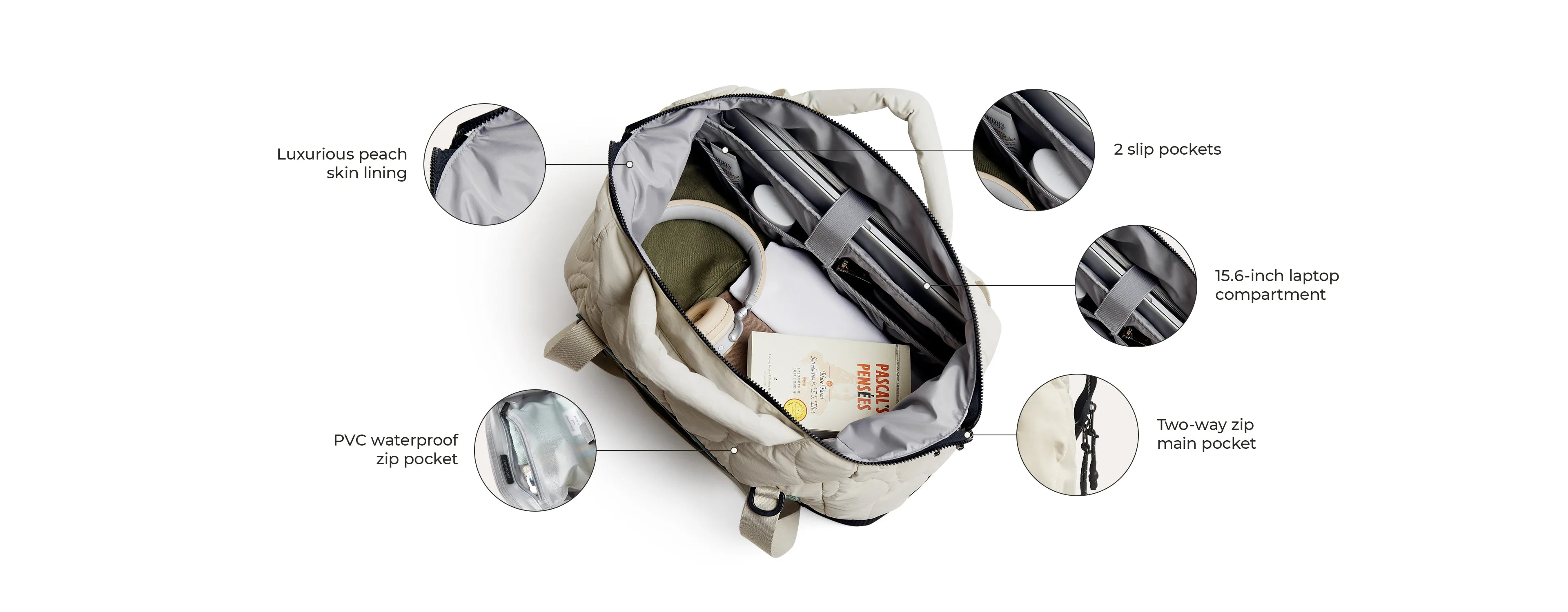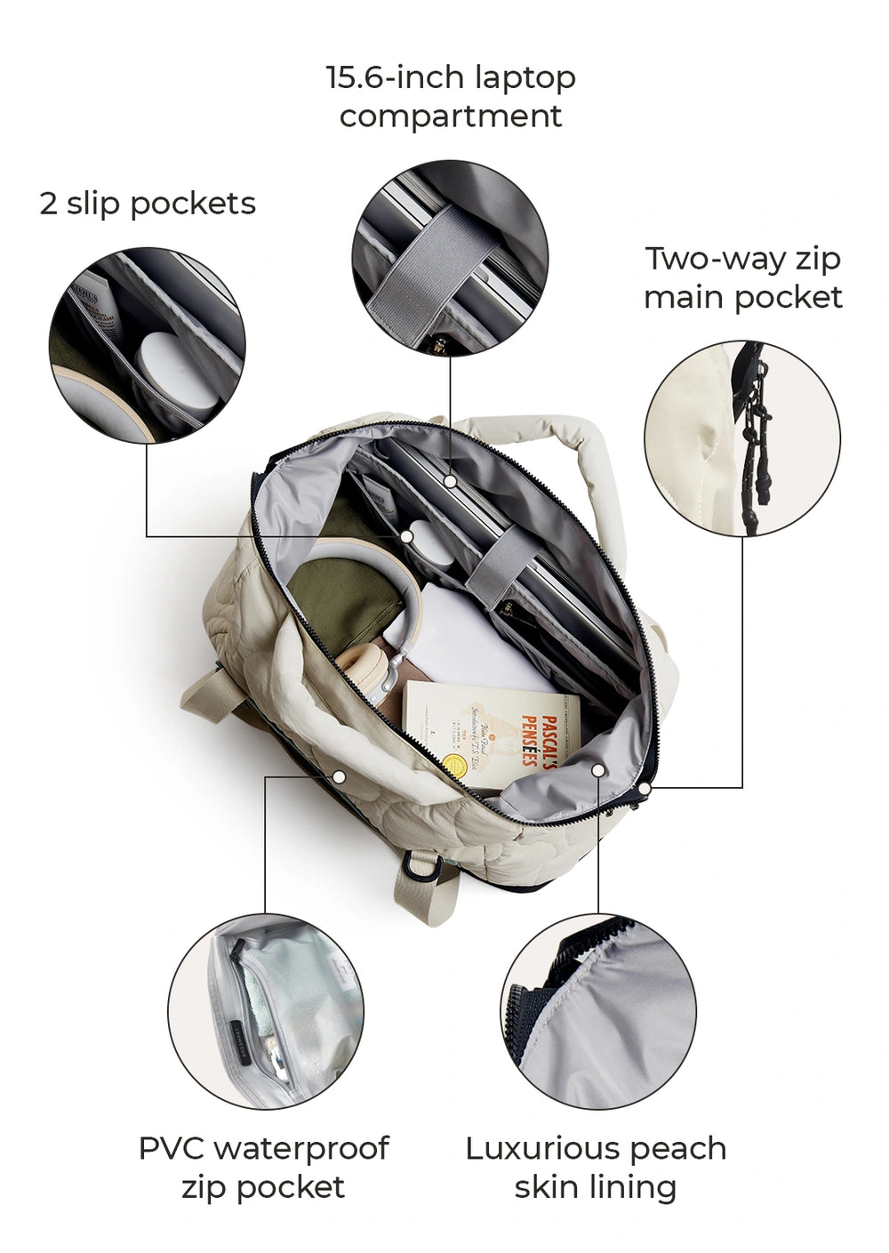 - Paz ( Vega) Rucksack: Ein eleganter und strukturierter , handgepäckfreundlicher Rucksack mit mehreren Fächern , einem gepolsterten Laptopfach und einem weit zu öffnenden Design für einfache Organisation.