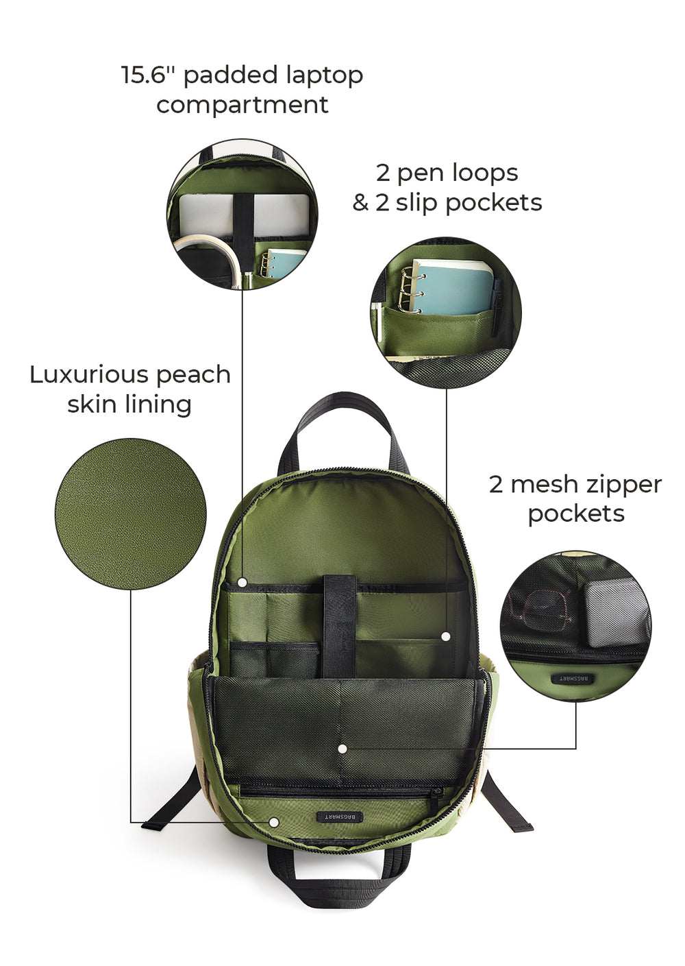 Laptopfach: In das Hauptfach passt ein 15,6-Zoll-Laptop, und in ein kleineres Fach passen Gegenstände wie iPad, Kindle oder Nintendo Switch.