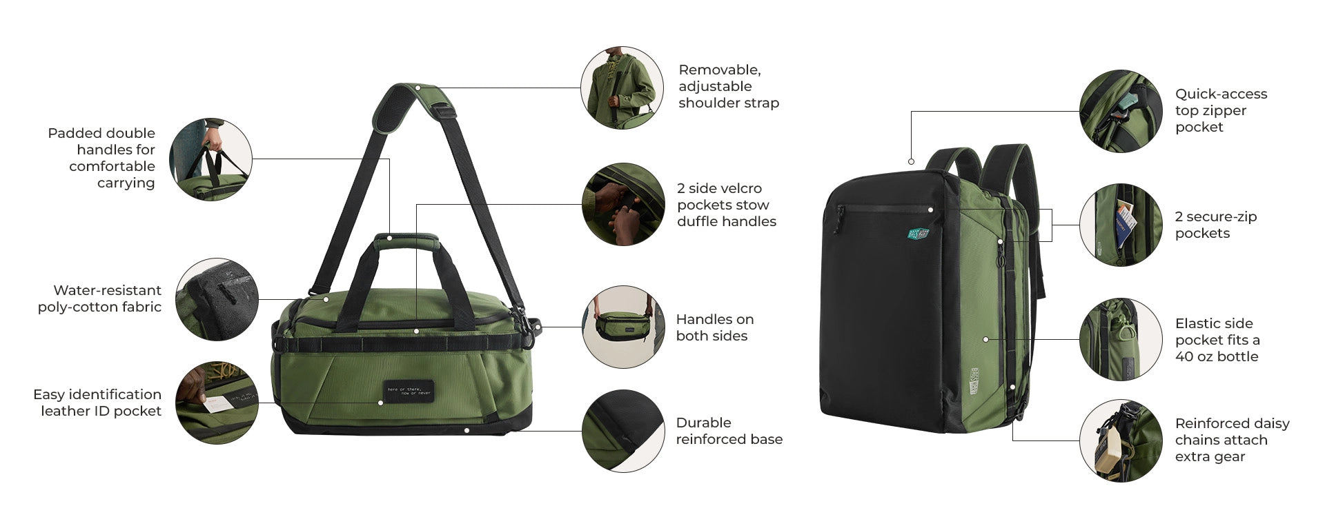 - Leichtes und strapazierfähiges Poly-Baumwollgewebe, wasser- und verschleißfest für jede Reise.