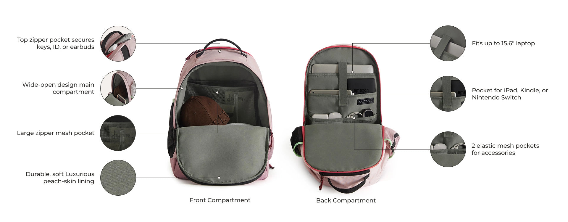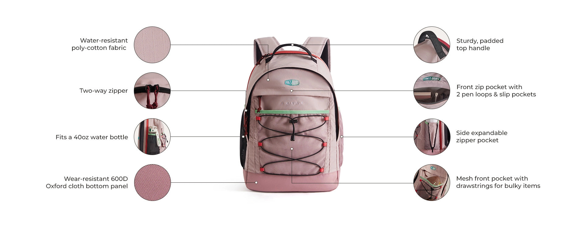 - Kordelzug und vorderes Bungee-System für zusätzlichen Stil und Funktion