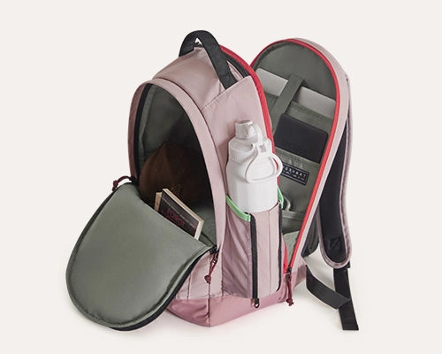 - 1 seitliche elastische Tasche mit Platz für eine Flasche bis zu 40 oz für schnellen Zugriff.
