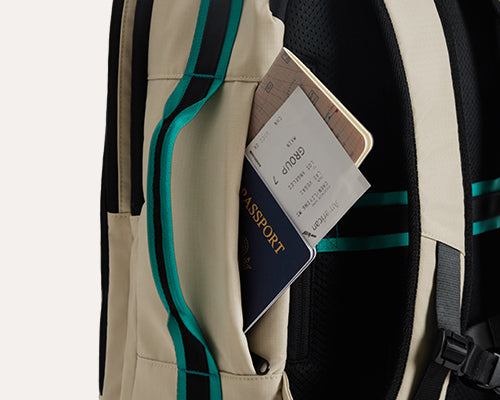 Eingelassene Reißverschlusstasche oben für Zubehör.