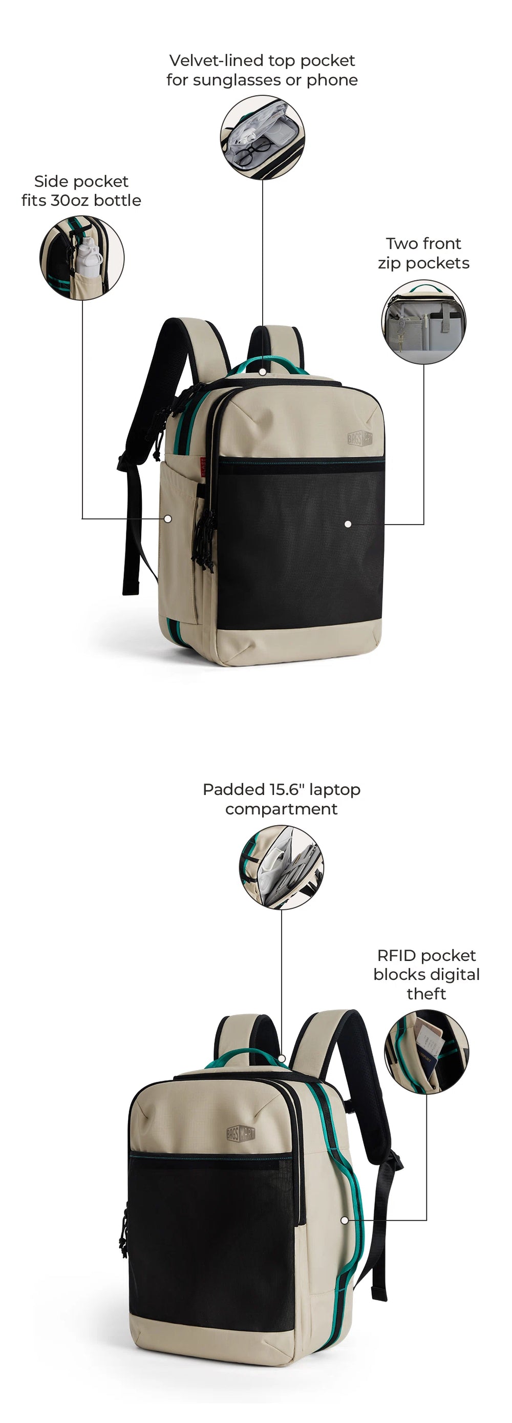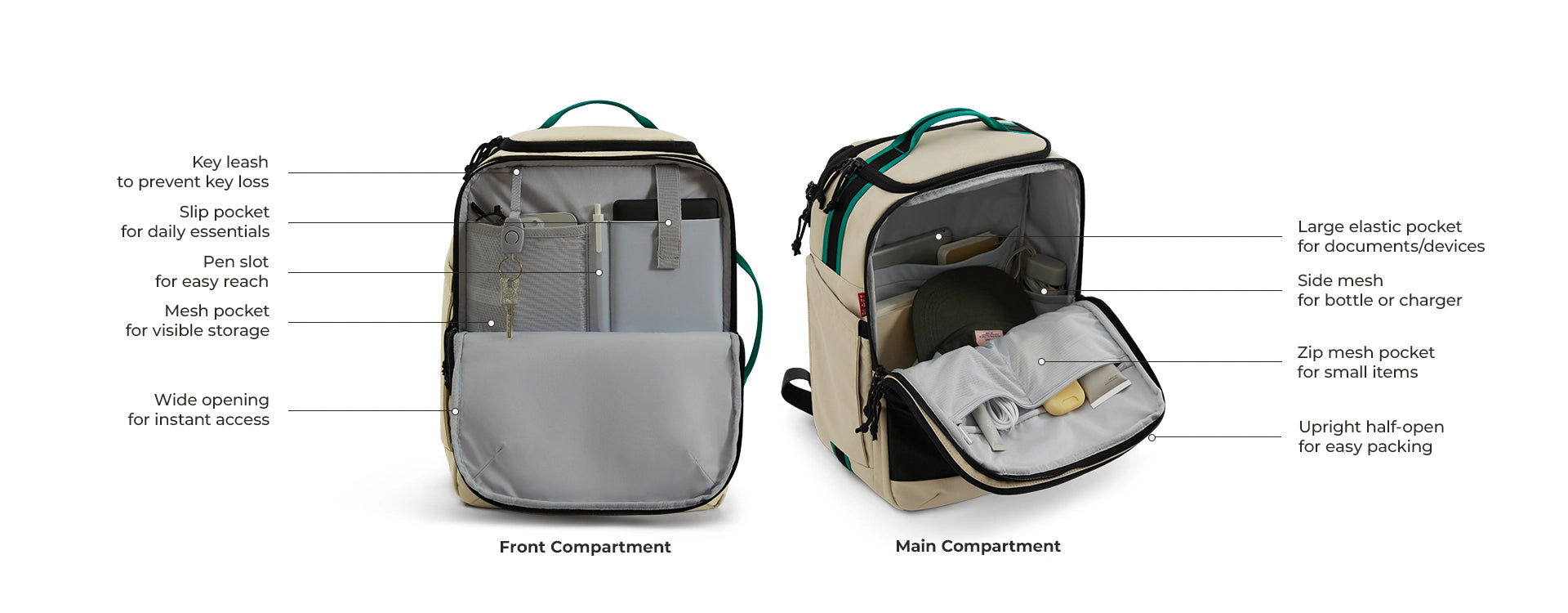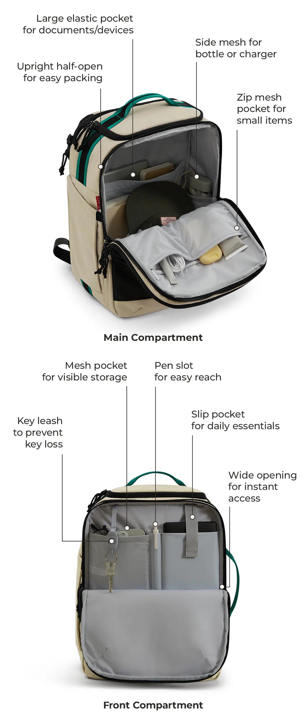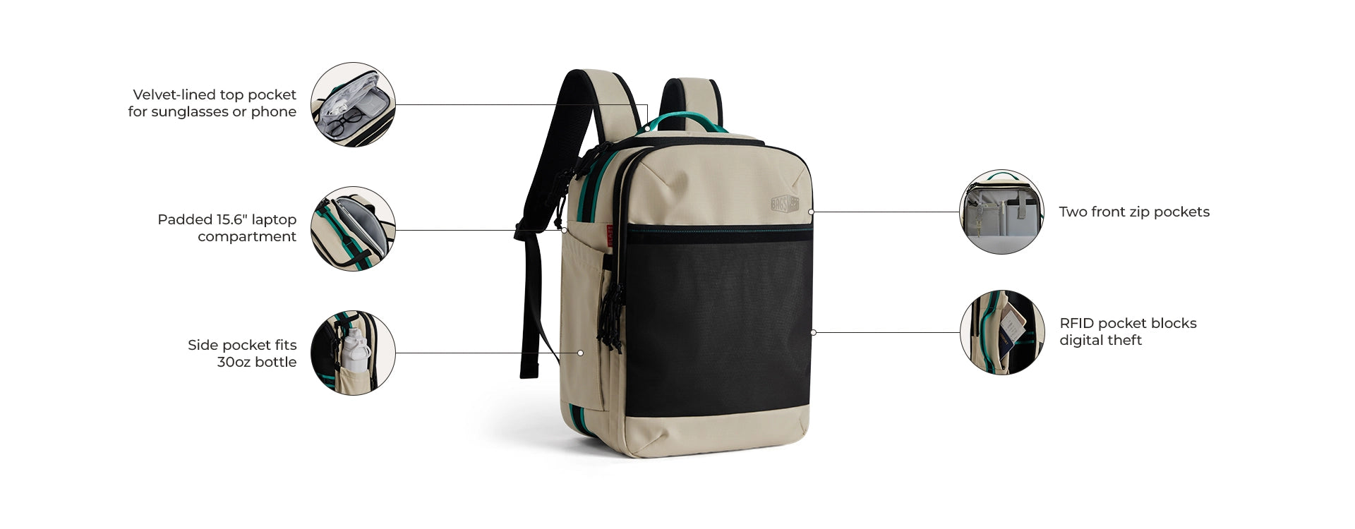 Laptopfach: In das Hauptfach passt ein 15,6-Zoll-Laptop, und in ein kleineres Fach passen Gegenstände wie iPad, Kindle oder Nintendo Switch.