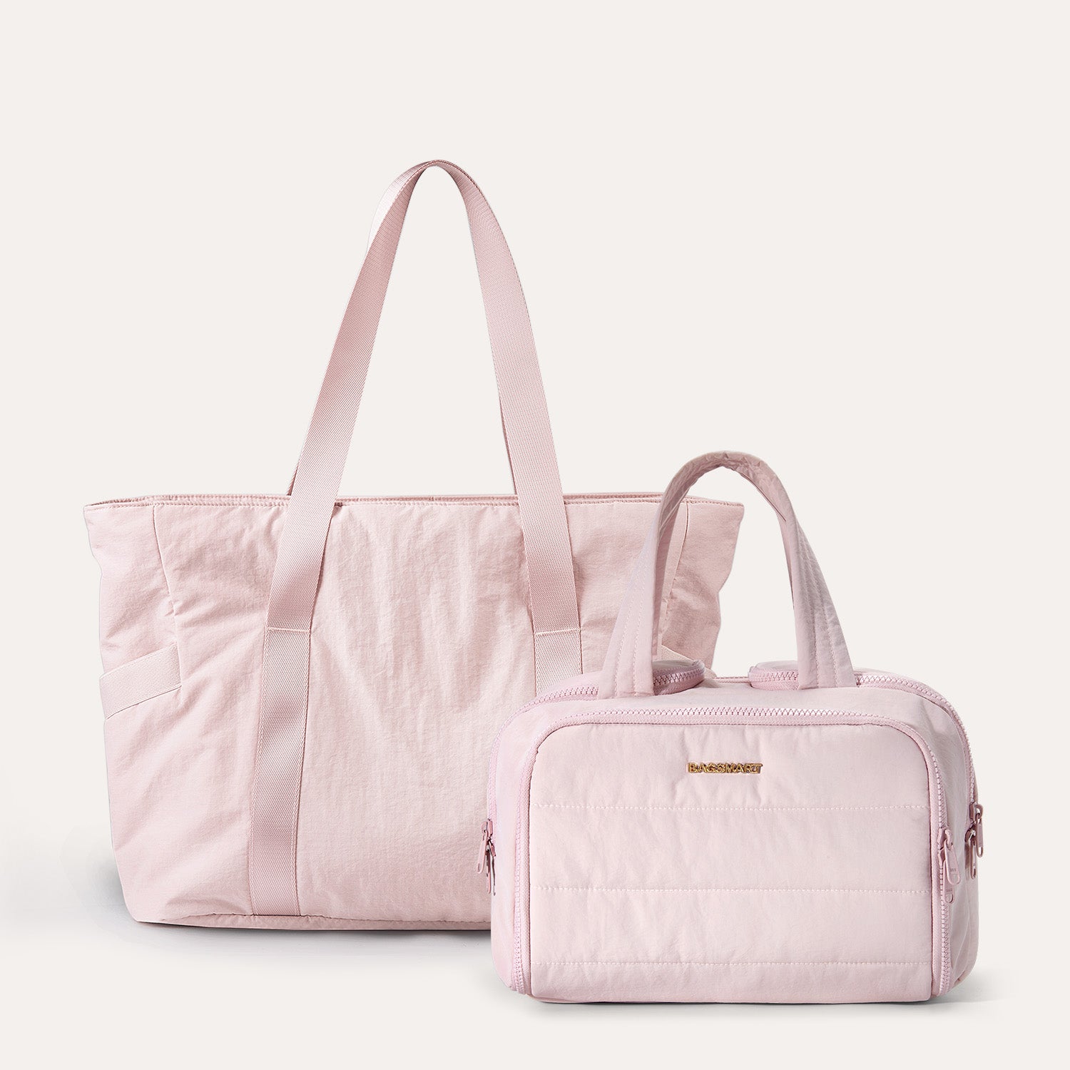 2-Taschen-Set: Tragetasche + wahlweise Kulturbeutel, Packwürfel oder Organizer.