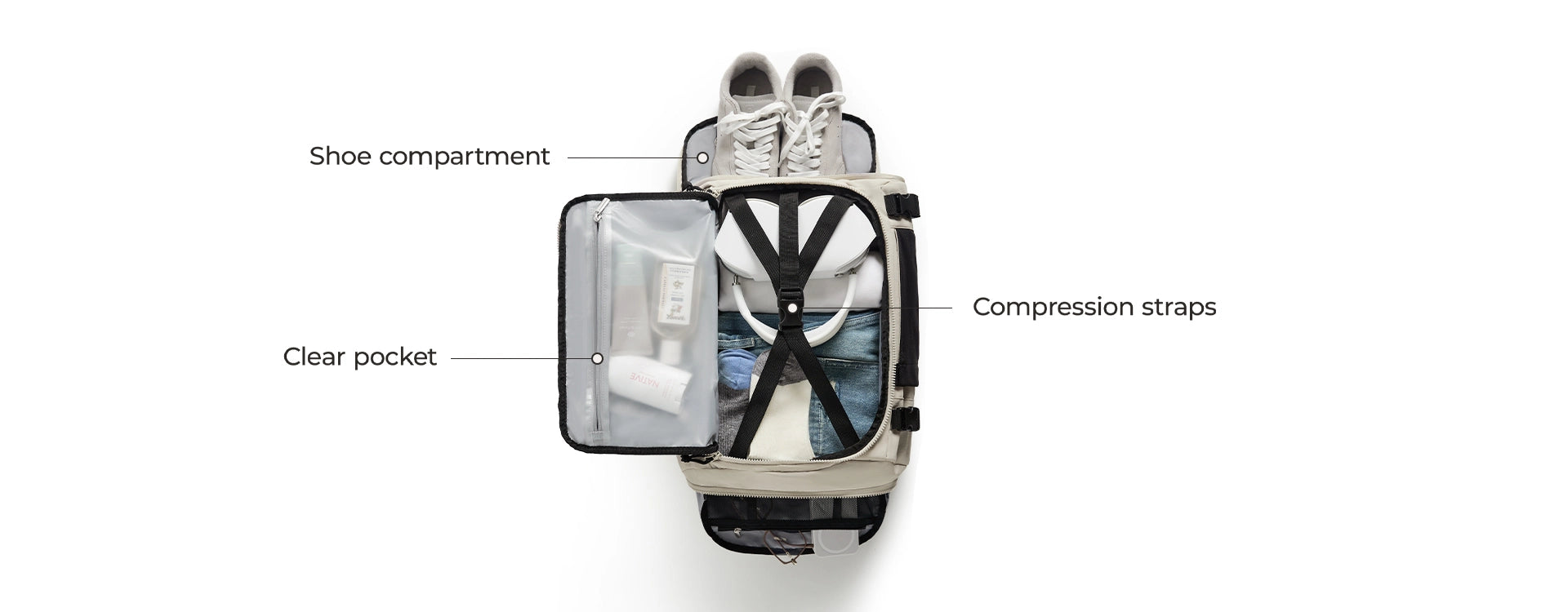 - Hauptfach mit 180°-Öffnung für einfaches Packen