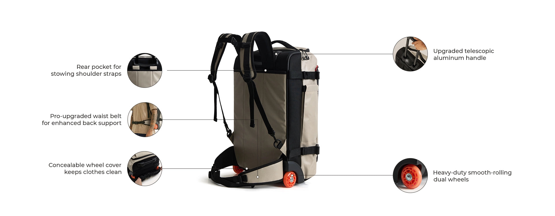 - Die Rucksackträger sorgen für bequemen Tragekomfort, wenn das Rollen nicht möglich ist.